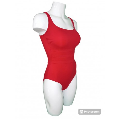 Bañador - Escote redondeado - Bandas en el talle con efecto moldeador - Tirantes anchos,Forro ROJO