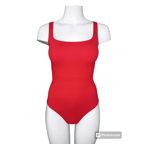 Bañador - Escote redondeado - Bandas en el talle con efecto moldeador - Tirantes anchos.Forro.