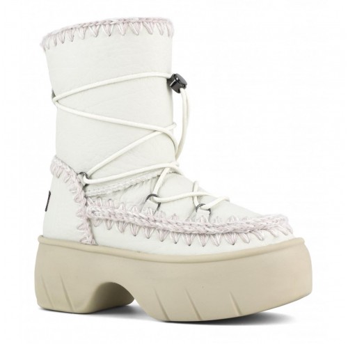 DETALLES DEL PRODUCTO Novedad para la temporada otoño/invierno 22, los botines eskimo snowboot twist son un modelo moderno que se adapta perfectamente al momento después del esquí. Las perneras con cordones, los detalles de ganchillo y la suave piel de oveja de doble cara se combinan con una suela resistente y cómoda para llevarte a cualquier sitio este invierno. Altura 23 cm.