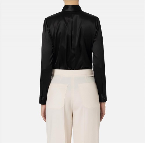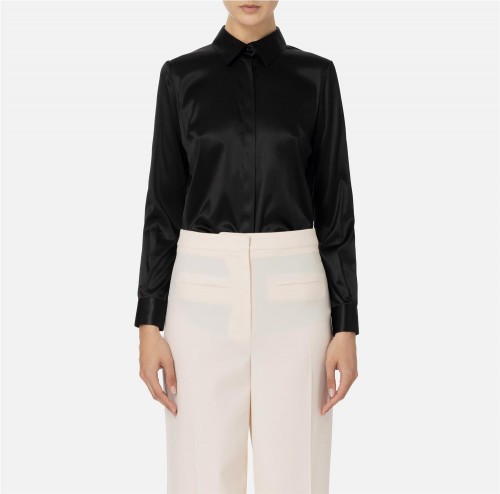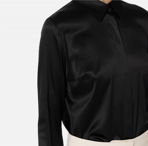 Camisa de mangas largas en raso de seda y cierre con botones ocultos de nácar.